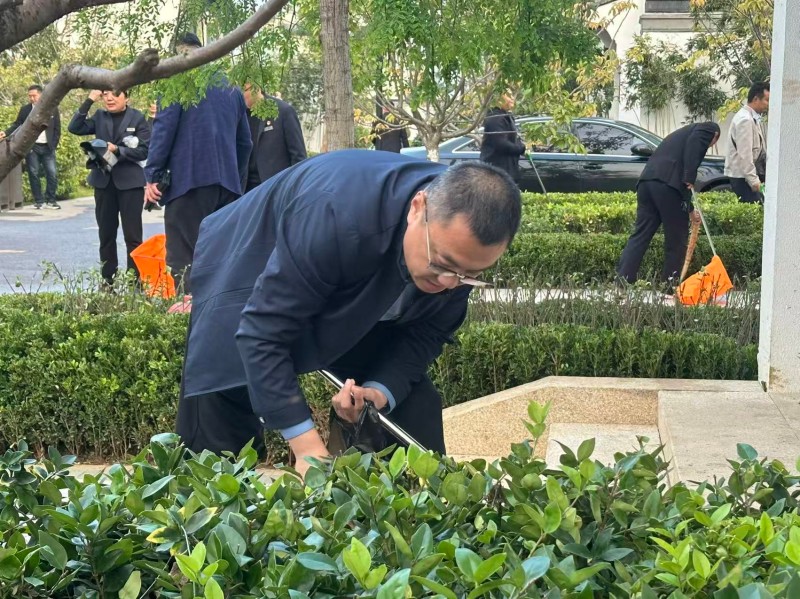 活动最后,全体党员积极响应“党建引领践初心”的号召,投身于环境维护志愿行动。全体党员佩戴党徽、手持工具,在项目周边区域认真捡拾垃圾、清扫路面,以实际行动践行党员责任担当。不仅为项目营造了整洁优美的展示环境,更展现了集团“党建引领、践行社会责任”的良好形象,进一步提升了品牌美誉度。